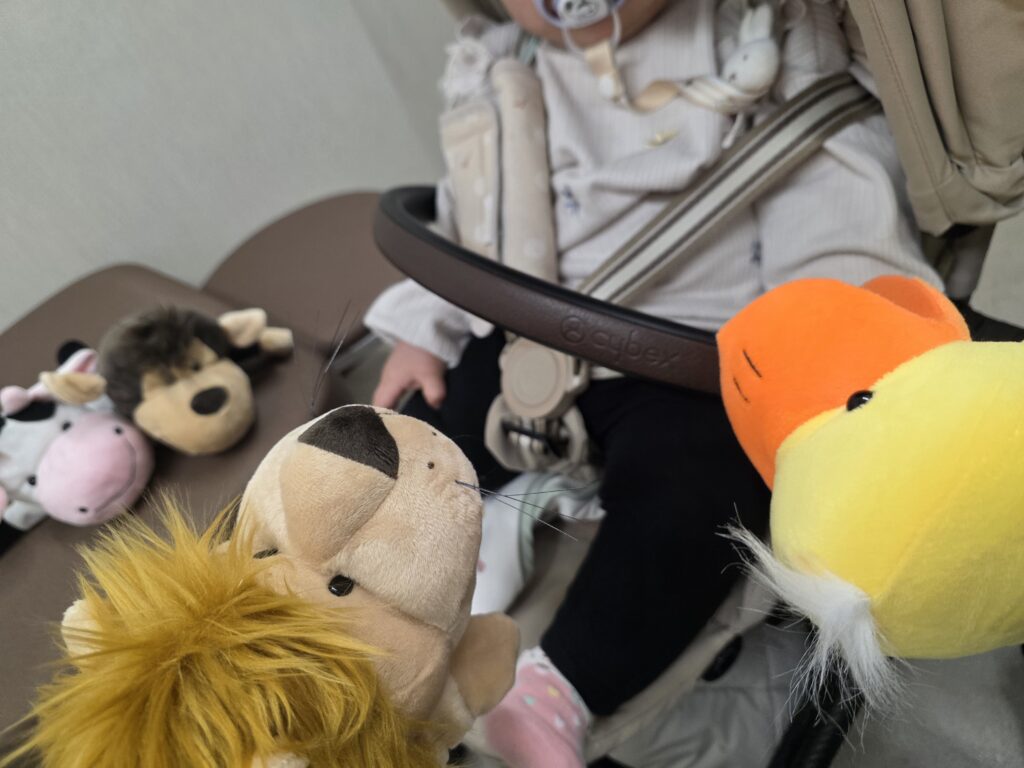 赤ちゃん連れで来られる方がX線撮影や骨密度検査をする際に、残された子供ちゃんがさみしくないよう、パペットたちを仲間にしてみました。今日さっそくちびっ子が来ましたがいきなり大活躍でした。